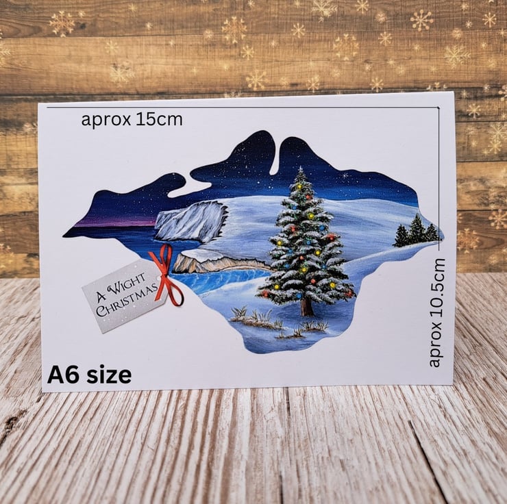 An Isle of Wight Christmas printed by me from my own original artwork. The snowy scene features the iconic Freshwater Bay in West Wight.
