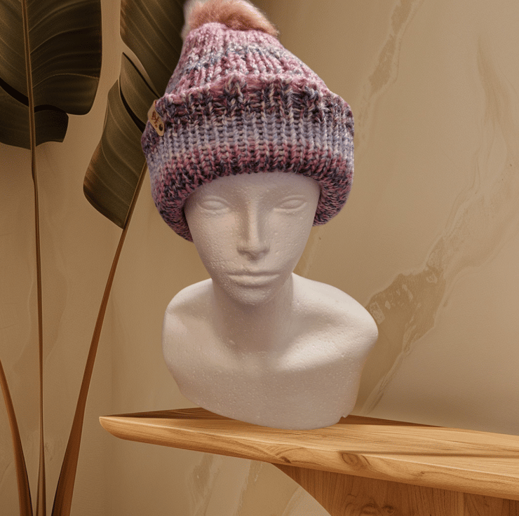 This Adults Knitted Pompom Hat by KraftyKty is a stylish accessory perfect for casual occasions during the winter season. Made from acrylic material with a multicoloured design, this pompom hat features crochet accents and a knit fabric type. The hat, suitable for women in size L, is designed with an outdoor theme and is sure to add a touch of warmth and style to your winter wardrobe. Made in the United Kingdom, this pom pom hat is a fashionable and practical choice for chilly days.