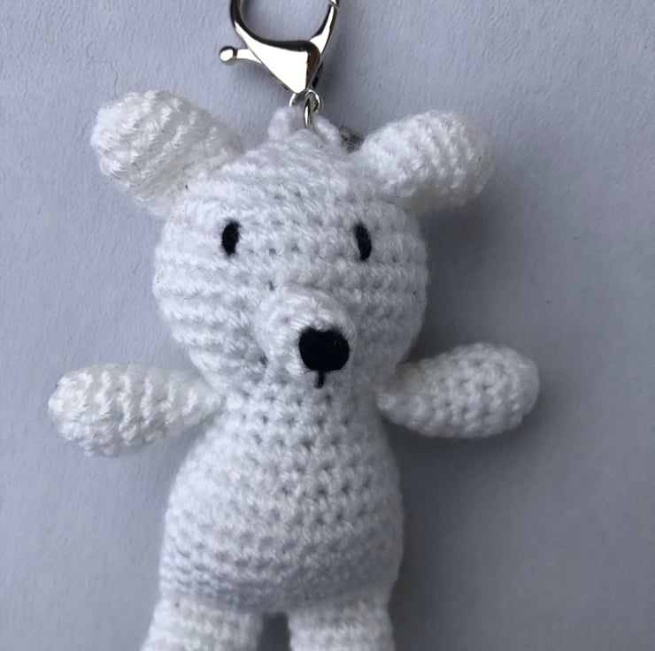 White Teddy Bear Crochet Keyring – Handmade Amigurumi Soft Toy