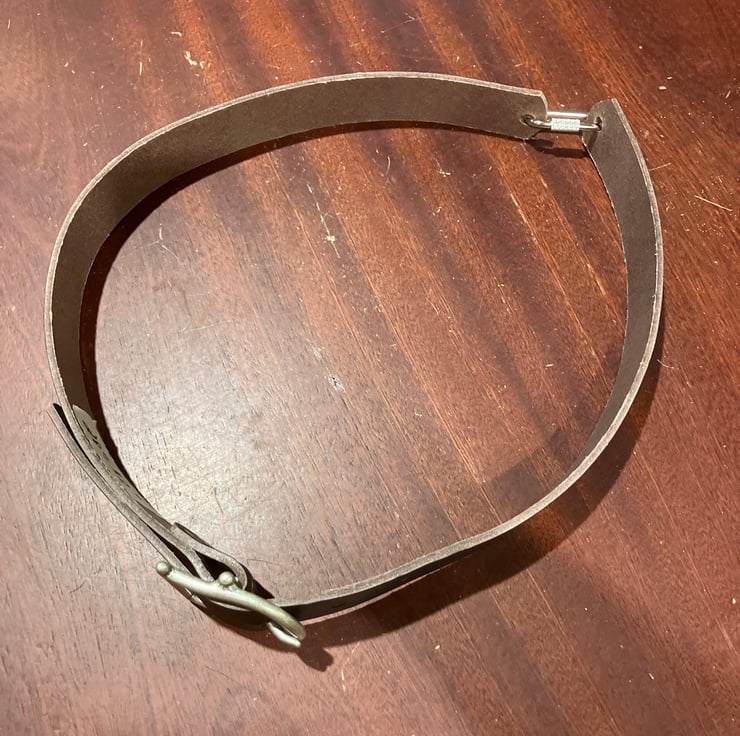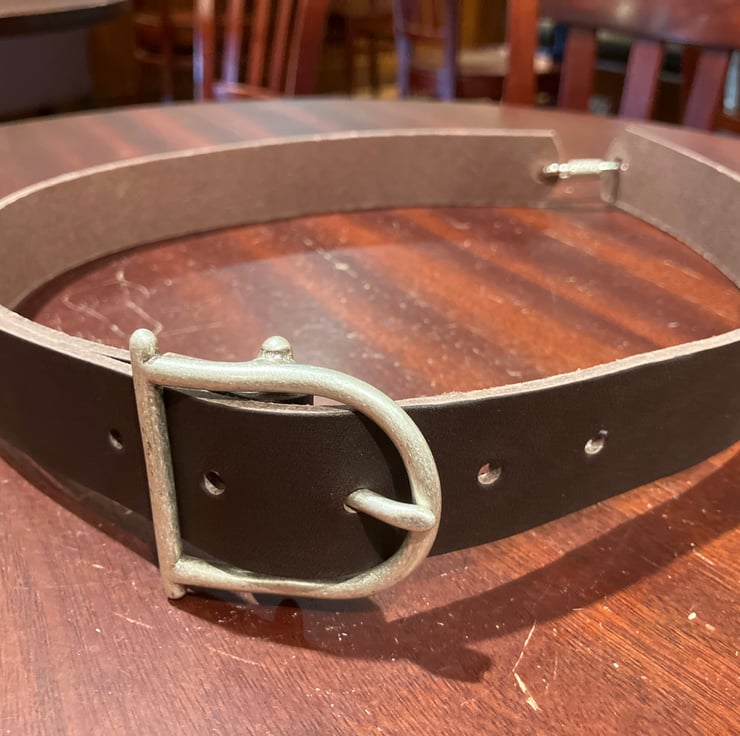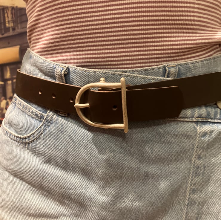 A simple brown leather belt with a buckle and a couple chain links - not something I normally make, but thought I'd expand on my belt line. Feel free to check out the rest in the belt section in different colours (mostly just black and brown) with different closures, etc.