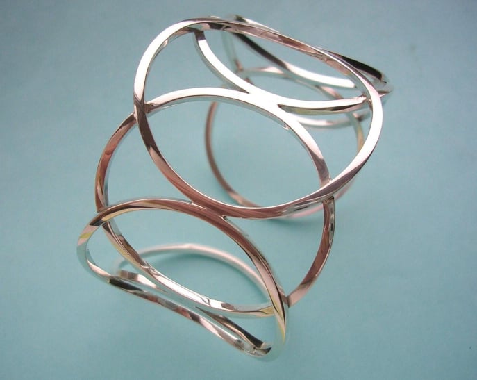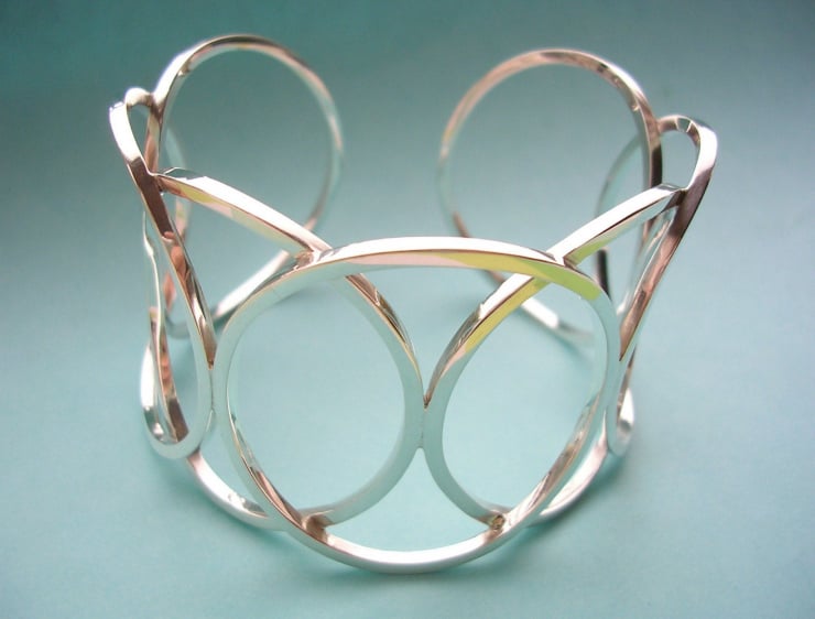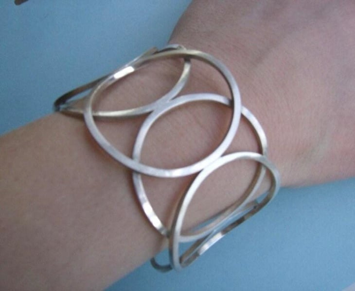 This Striking Cuff Consists of 7 Large Silver Circles Which Overlap Each Other in Two Layers.