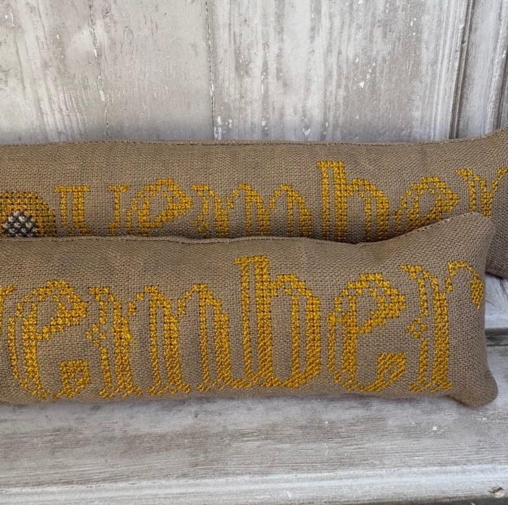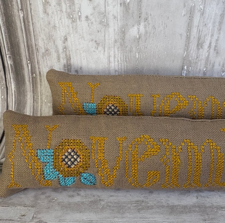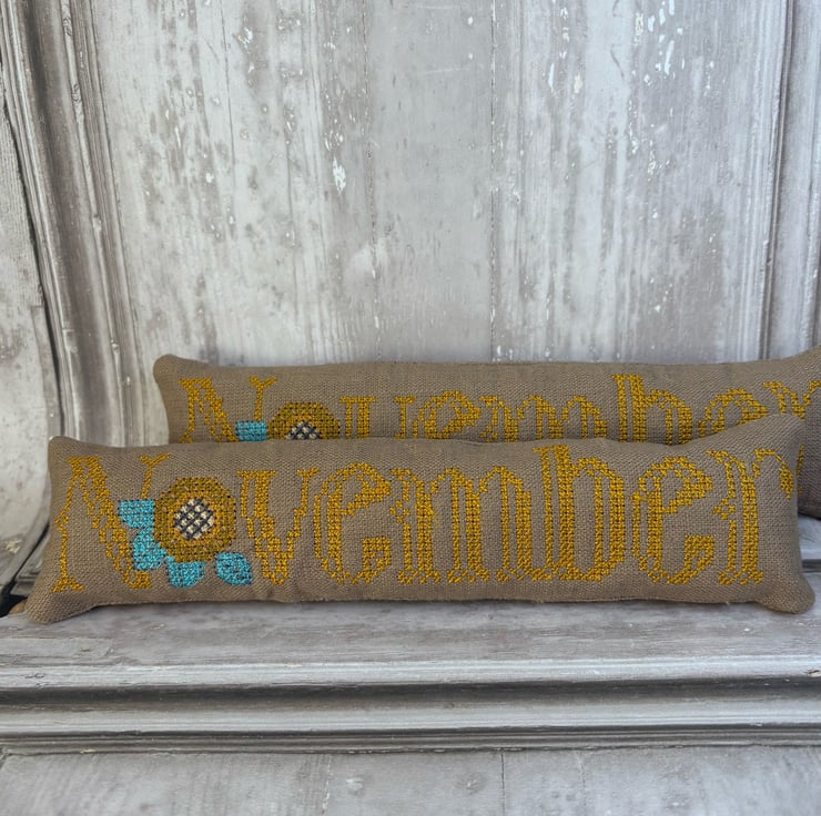 Bowl Fillers machine embroidered cross stitch design. Measuring 8.5” x 2”. Camel pre washed linen fabric filled with polyester fibrefill. Little pillows of fun. This design represents Autumn. Select 1 or fill a bowl full of Autumn colours.