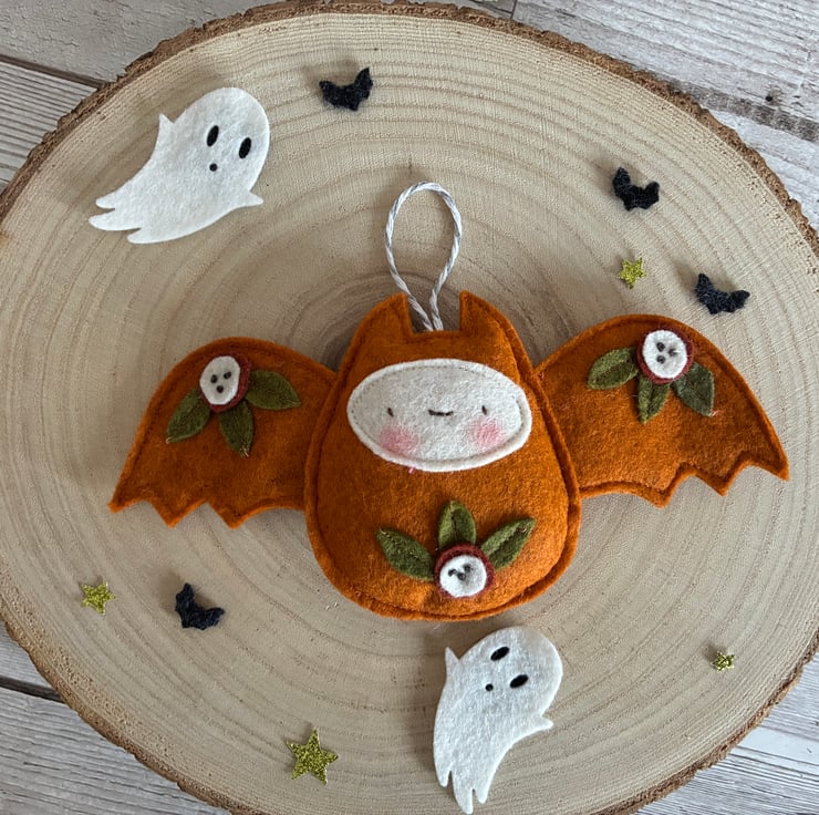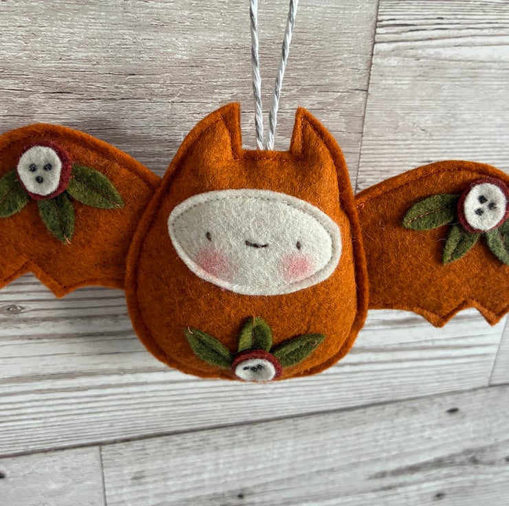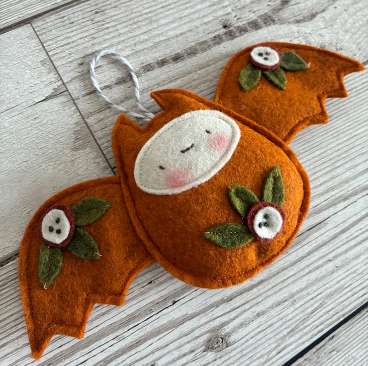 He is made from quality wool felt and handmade. He measures approximately 17cm wide by 8.5cm high and has a hanging loop to hang him up. His body is slightly padded to give him a 3d effect.
