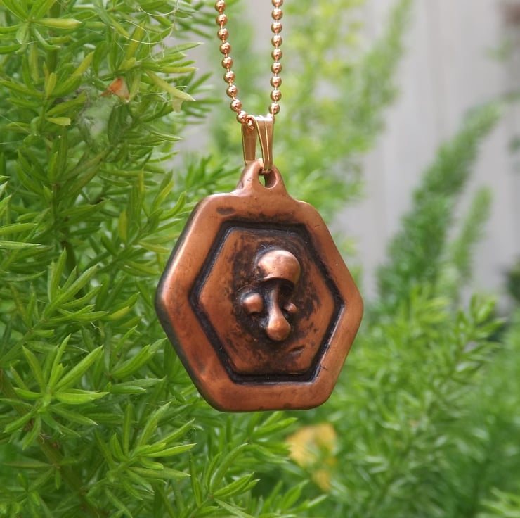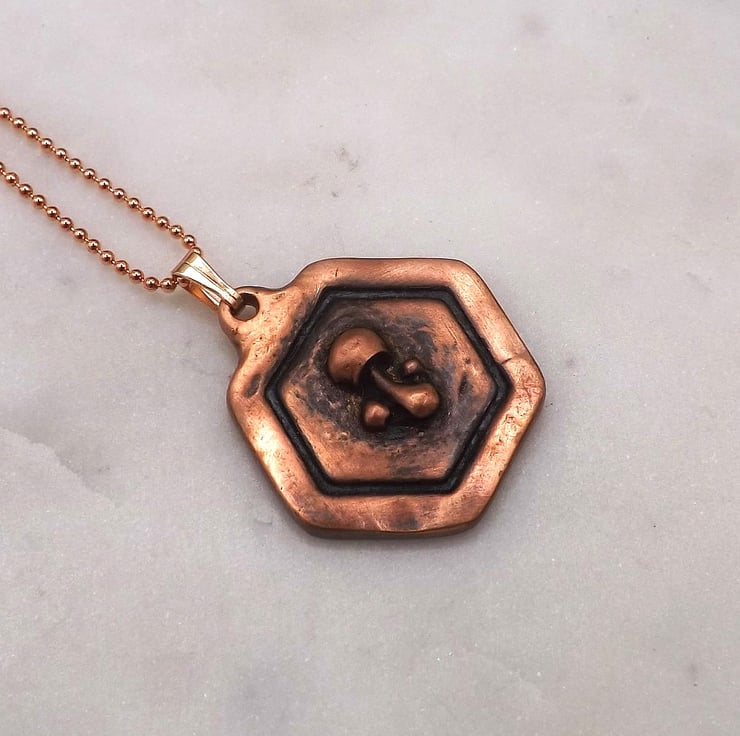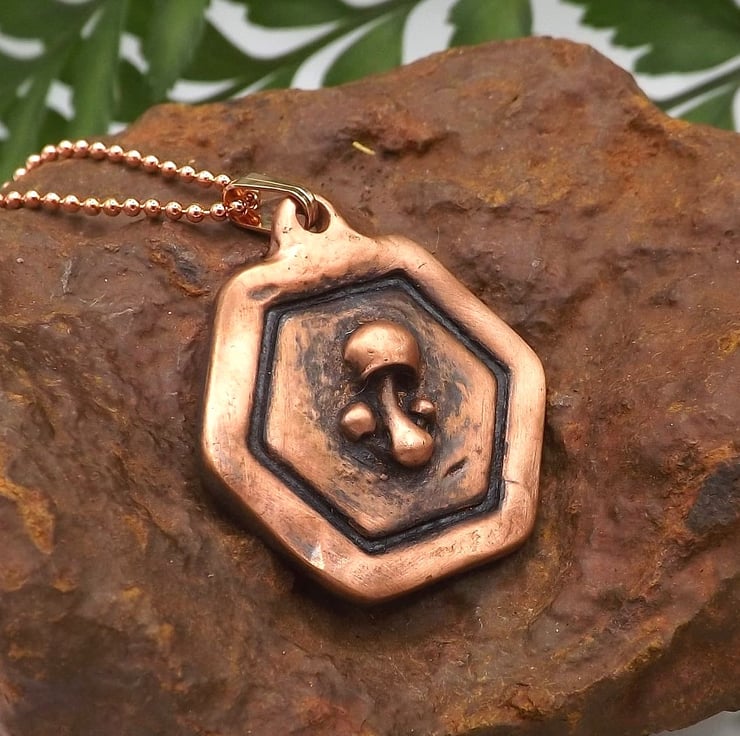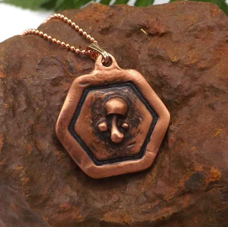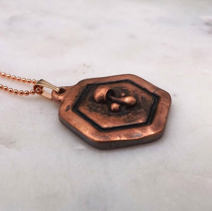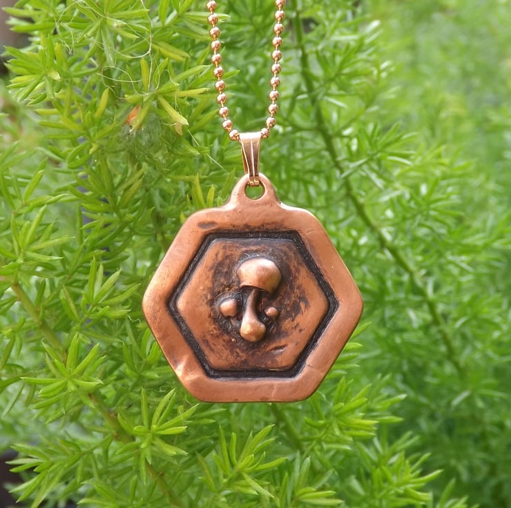 Recycled Copper Mushroom Framed Pendant Necklace.
