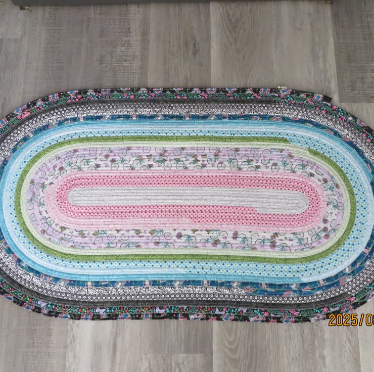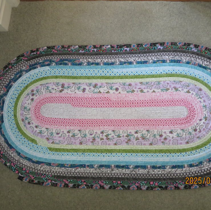 Add warmth, colour, and charm to your home with this handmade jelly roll rug! Each rug is created from high-quality 100% cotton quilting fabric strips (jelly rolls), carefully quilted for durability and a soft, cushioned feel underfoot.