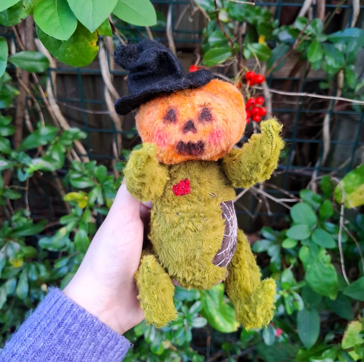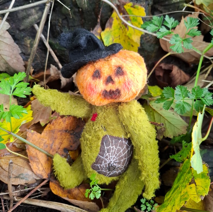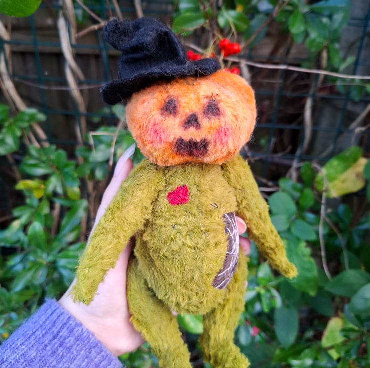 Coraline - OOAK Pumpkin Artist Teddy, Halloween Decor, Handmade Spooky Gift