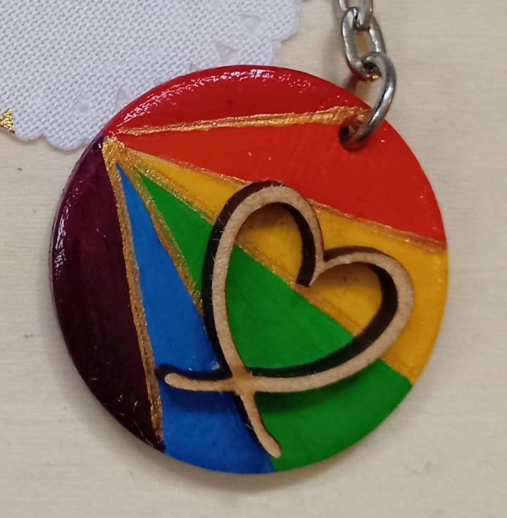 Wooden circular pride rainbow keyring