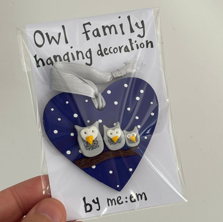 I started making these little owls out of polymer clay last year to go on Christmas cards and everyone loved them. So this year they’re back as hanging decorations. I have created several owl family pieces, but please message if you’d like a different family of owls as I can make to order. Perfect as a seasonal item or to be loved all year round. These add an adorable touch of cute and unique to any wall, tree or place they adorn and can be kept or gifted to friends or family.