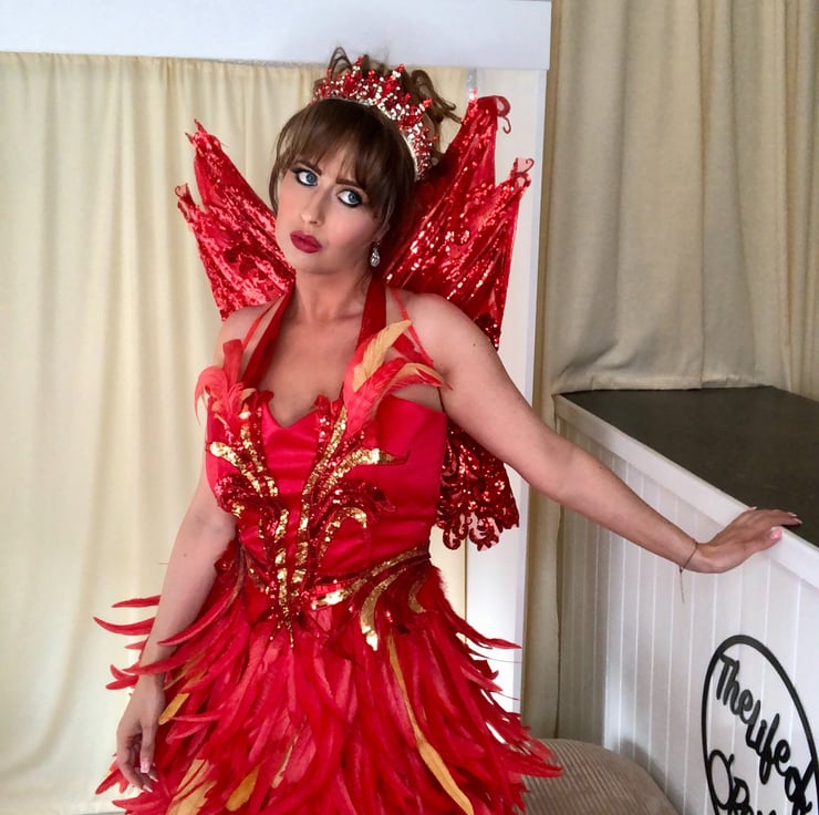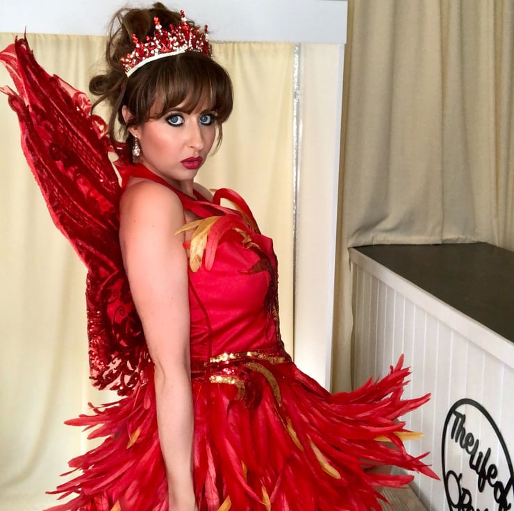 After creating a shimmering metallic gold Forest Fairy Costume, I wanted to explore a fiery counterpart — a costume that celebrates the warmth, energy, and boldness of fire. The rich red satin evokes flickering flames, while the hand-placed feathers capture the movement and unpredictability of a fire dancing in the wind. At The Life of O’Reilly we specialise in creating unique luxury costumes that transport you to magical worlds and let your imagination run free.
