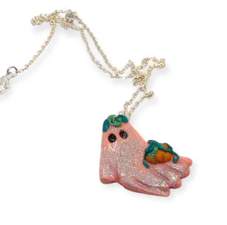 Pink Ghost Necklace, Halloween Jewellery, Gift For Her, Pumpkin Ghost Pendant