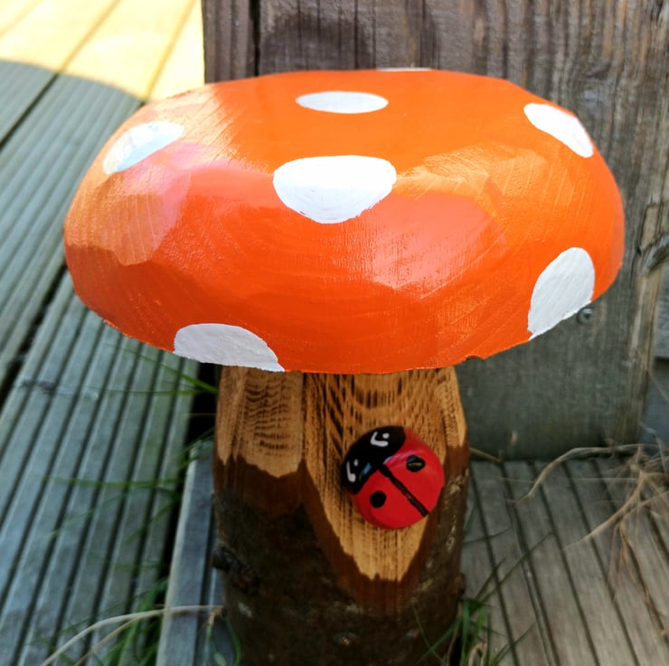 It is decorated in weatherproof paints and the ladybird is also handmade.