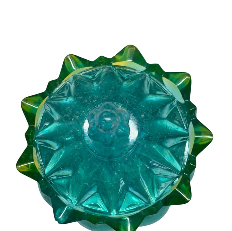 A truly eye catching handmade resin trinket jar, crafted in a beautiful turquoise hue with delicate yellow petals around the lid. This striking piece is both decorative and practical - perfect for storing jewellery, keepsakes or small treasures.