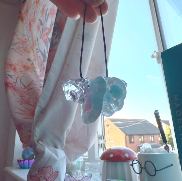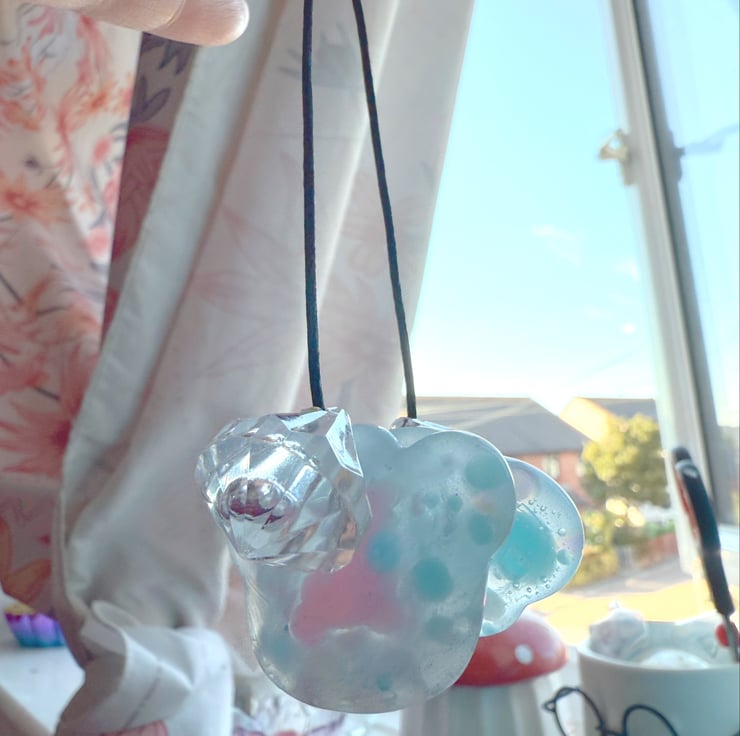 This is my design and a three in one fidget all in one keyring. The sounds it makes when you fidget with it are super satisfying. But on all keyrings there’s two worrystones with textured backs. So they feel good, sound good and look good! If you want to see it in action head over to instagram (at) HazyHandsSensory