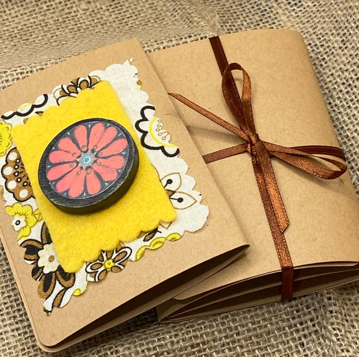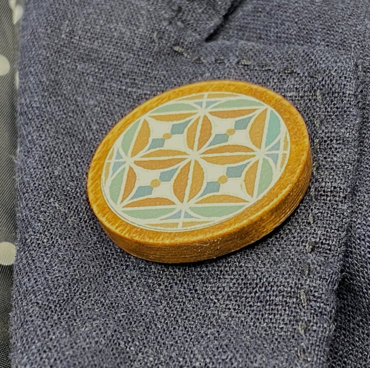 The wooden pin is 3.4cm in diameter. It's presented with card board backing when folded is 10.5cm length and 7.3cm width. It is gift wrapped in a card folder with a ribbon which you can untie and write your own message. I include a free notelet if you don't want to write on the brooch packaging. If you want to say a message on the back there is a list of ready made ones for you to choose. If you want a particular name to be added on the back then contact me via the "Note to seller" option at checkout . Thanks for looking at my brooches!