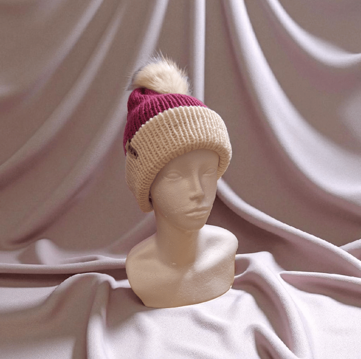 The Knitted Small Adult Pompom Hat in Light Burgundy by KraftyKty is a stylish and cosy accessory perfect for the winter season. Made from acrylic knit fabric, this classic outdoor-themed hat in a soft light burgundy colour is ideal for casual occasions. The pom pom detail adds a touch of charm to this versatile hat, making it a must-have addition to any woman's winter wardrobe.