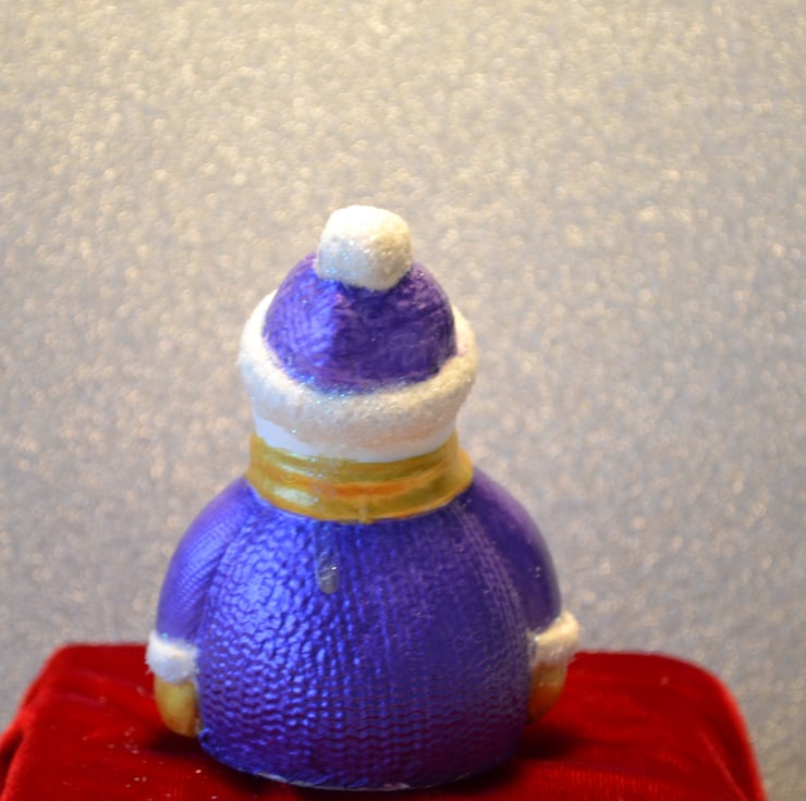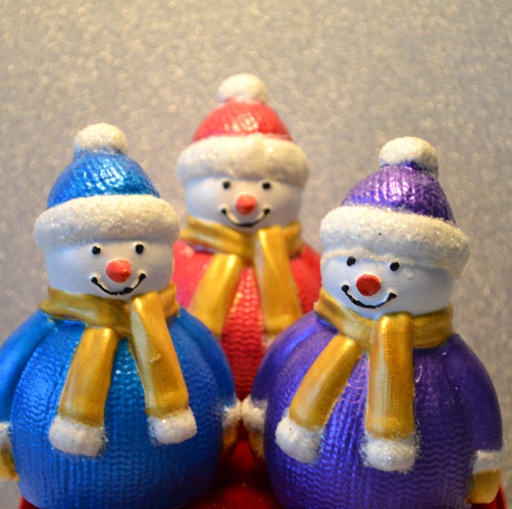 Bring the magic of the season into your home with a charming hand-painted snowman figurine. Each snowman wears a bright winter hat (red, blue, and purple) and a golden scarf, with rosy cheeks and a cheerful smile that captures the joy of Christmas.