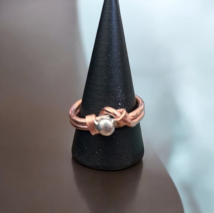 Made with 2mm bare copper jewellery wire which has shaped and doubled making this ring exceptionally robust, a piece of jewellery for life. I have added a sterling silver dome approx 6-7mm in size to this design which finishes it off as a beautiful mans ring. Perfect for a man who appreciates handcrafted bespoke items. Your ring will be gift boxed and sent via tracked mail.