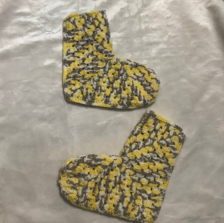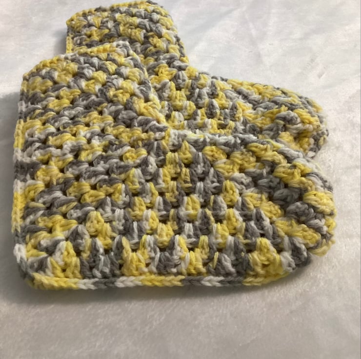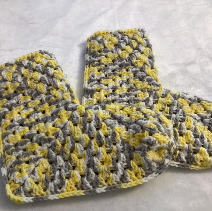 Hand crochet socks. I’ve used Rainbow yarn, 80% Acrylic and 20% Wool, mix colours. One size 4-7. Wash at 30. Dry flat. Measurement in cm. Been pre-washed . Colours may slightly vary due to the lighting during the photo shooting or the monitor's display.