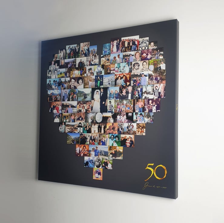 A Heart Shape Photo Collage custom designed from your photos and printed on premium canvas. This product is the perfect personalised gift.