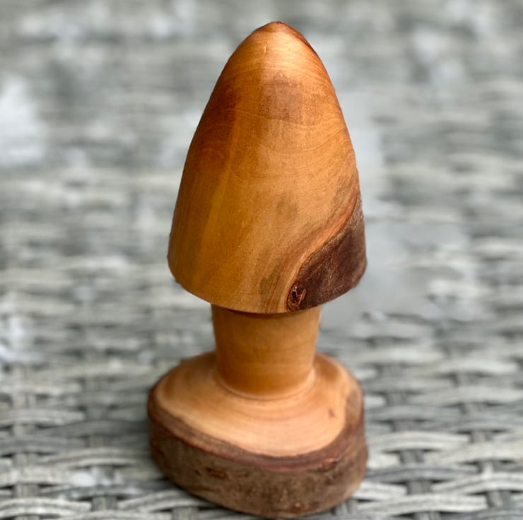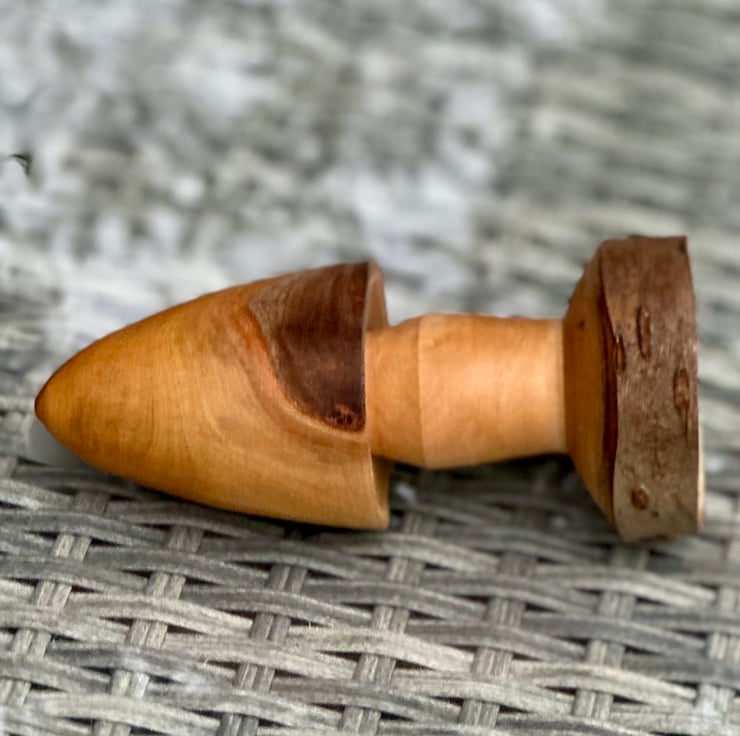 a fun little item made from a single tree branch, it retains some of its bark and has a pleasing grain pattern.