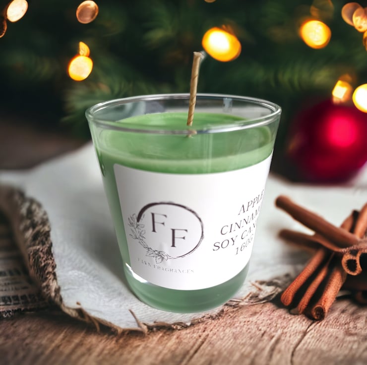 Get into the Christmas spirit with our Apple Cinnamon Christmas Candle! Handpoured in the UK, this festive scented soy wax candle will create the perfect ambiance in any room. Embrace the cozy aroma of apple and warm cinnamon as it fills your space with holiday cheer. Add a touch of magic to your home this season with our beautifully crafted candle.