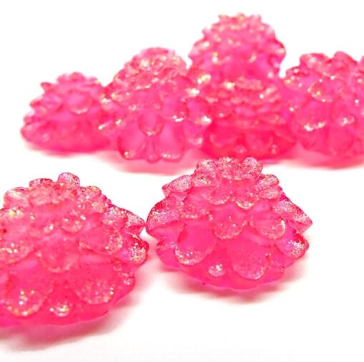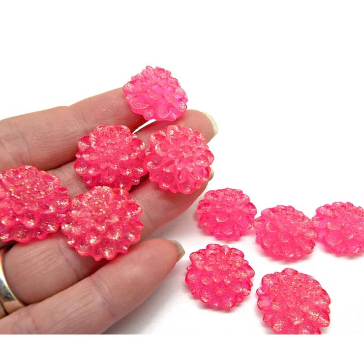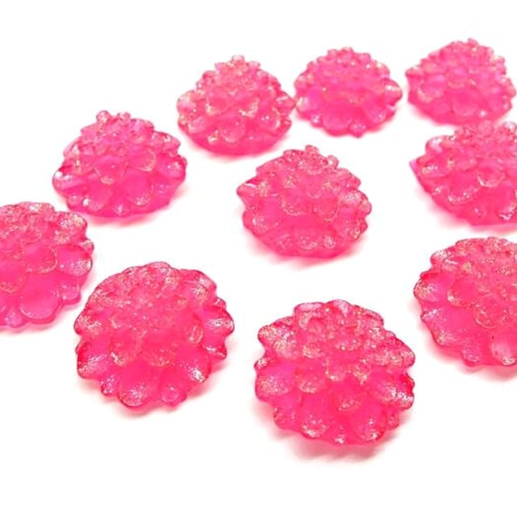 Pack of 20 Flat Back Bright Pink Glitter 20mm Flower Cabochons
