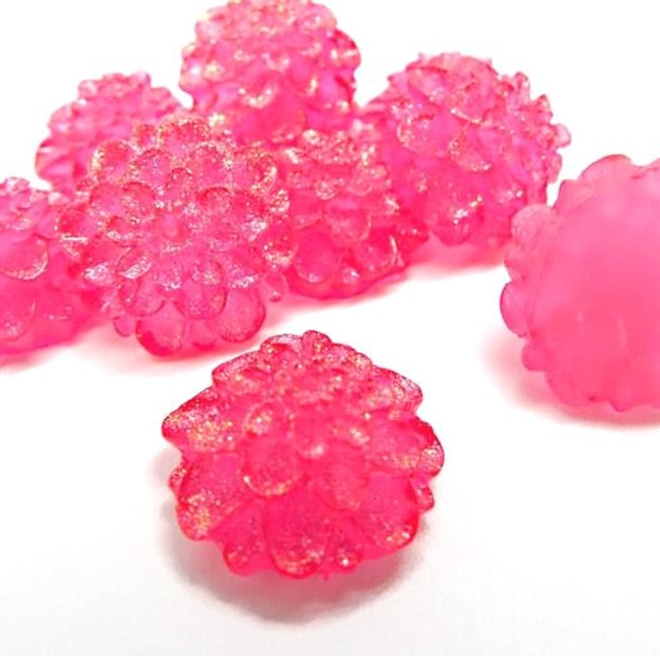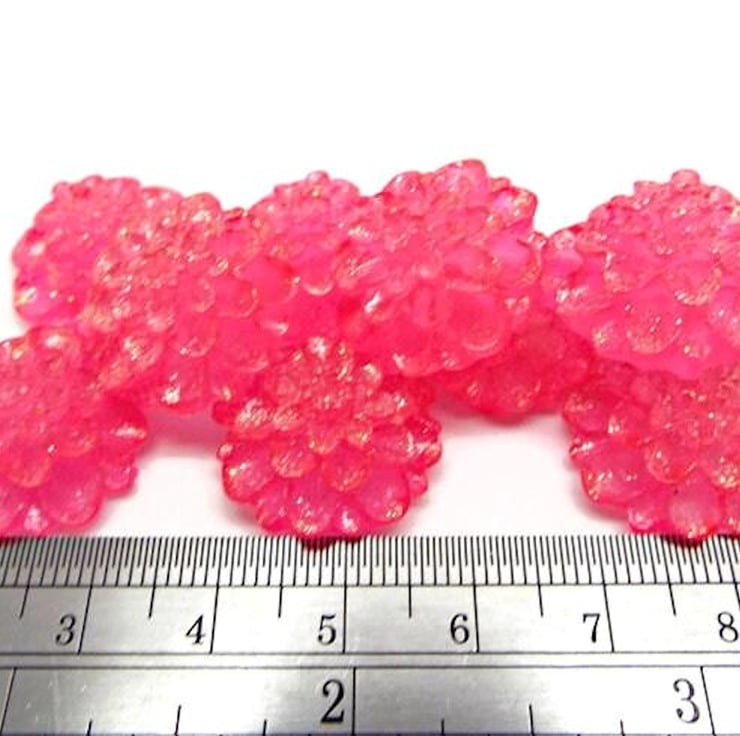 20 Pink Flower Cabochons, 20mm Resin Flatbacks with Glitter