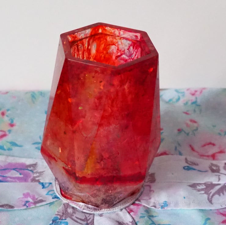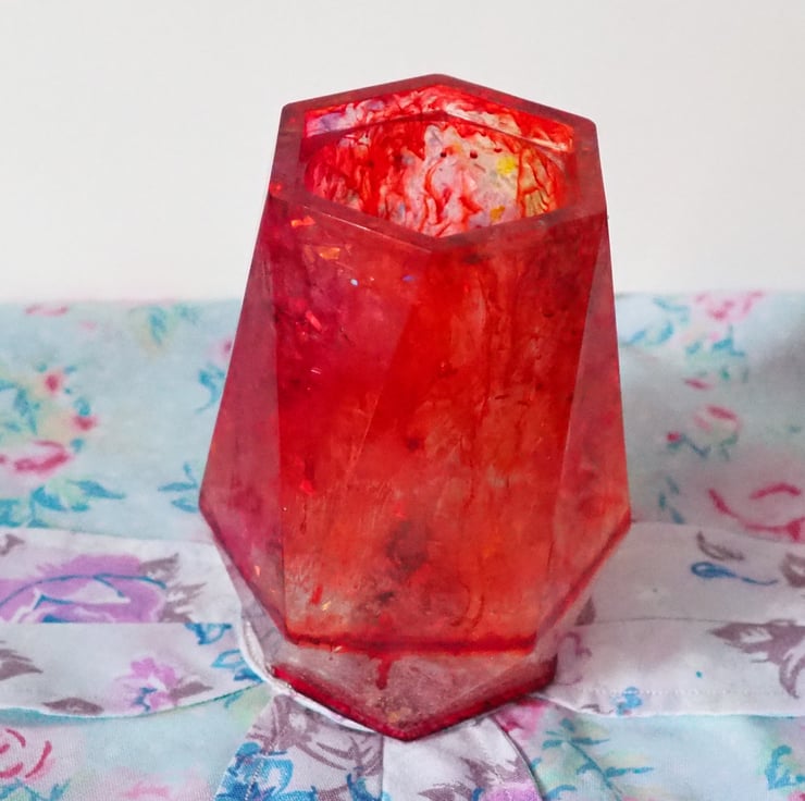 Hexagonal Resin Pot in Red, Orange and Yellow