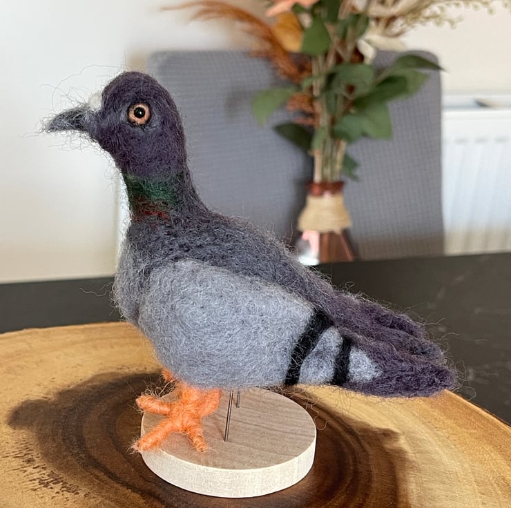 Often overlooked but full of charm, this little pigeon brings a touch of urban wildlife into your home. Carefully needle felted by hand from soft wool fibres, each pigeon has its own character – plump, gentle, and full of personality.