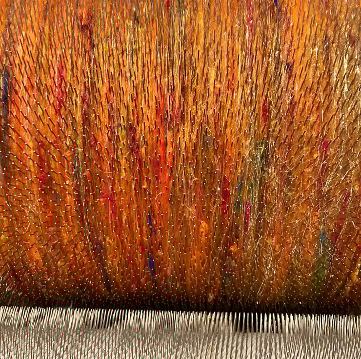 Fibres: Merino Wool, Shetland Wool, Recycled Sari Silk, Throwster's Silk, Mulberry Silk, Angelina Fibre