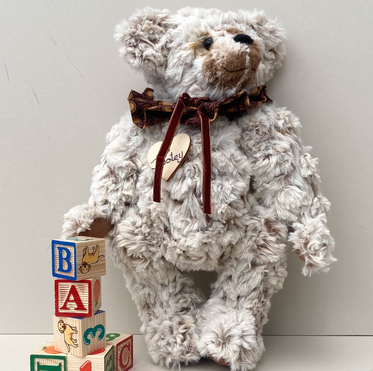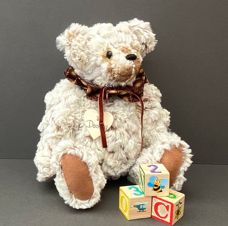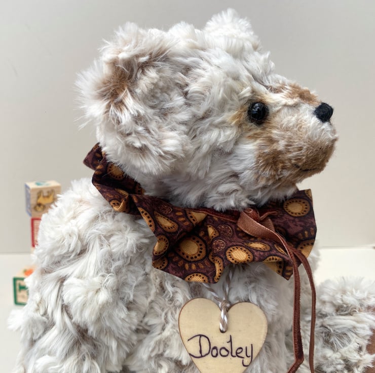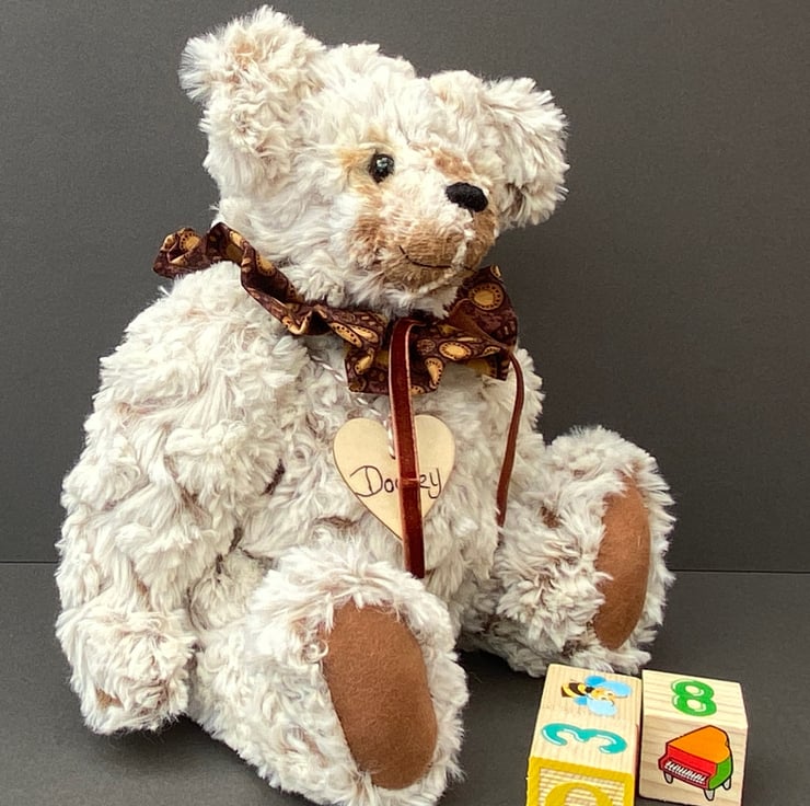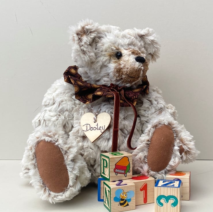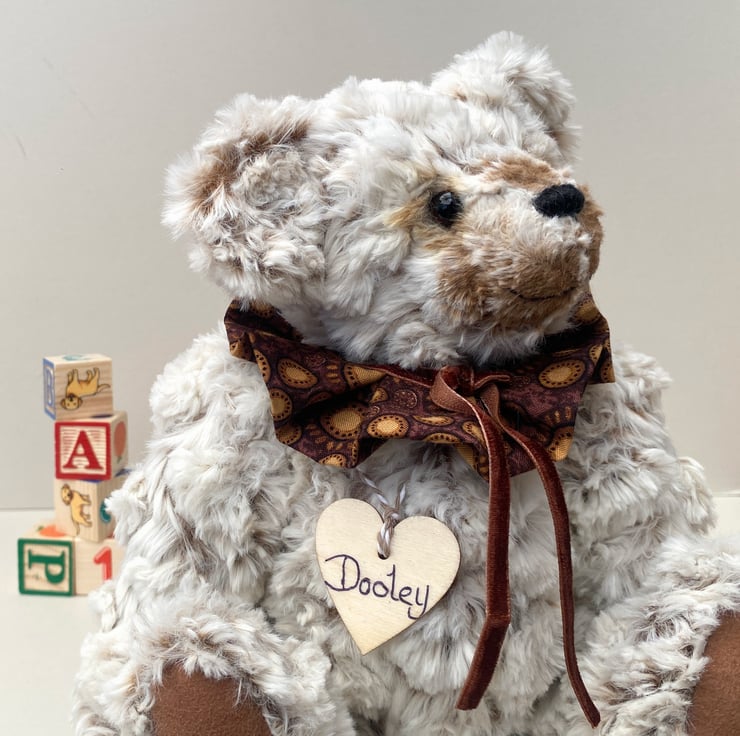 Meet Dooley, a unique chubby bear in a lovely mottled soft faux fur.