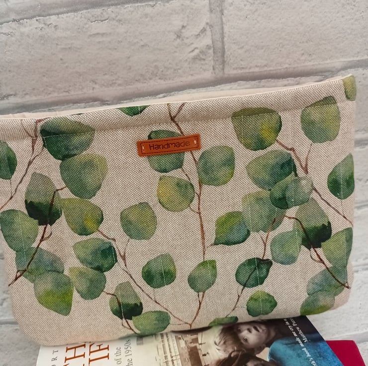Made using a lovely leave print fabric. Lined with plain cotton fabric.