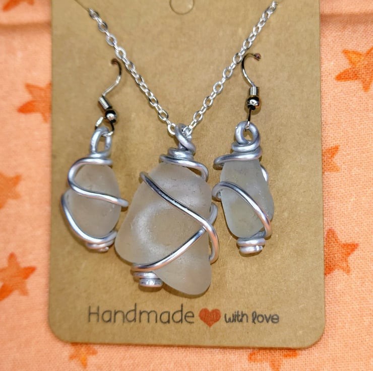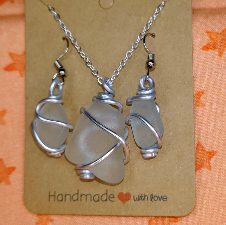 Timeless and minimalist, this white seaglass necklace & matching earrings is handmade using genuine frosted seaglass.
