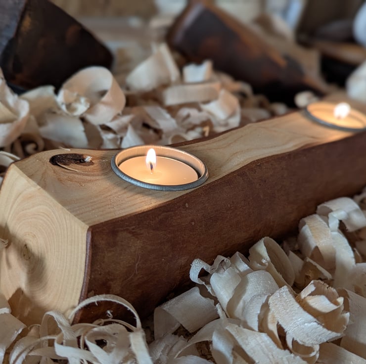 Using Ash trees my grandfather planted over 45 years ago I have handmade this Tea light holder. Although it holds 2 Tea lights it's 1 of the biggest and heaviest I've produced.