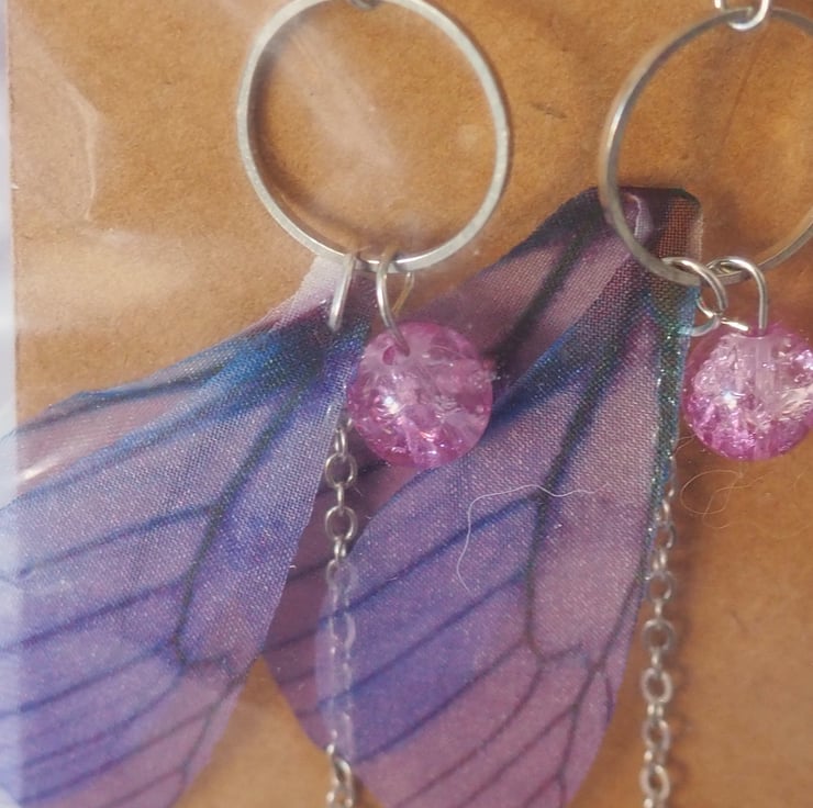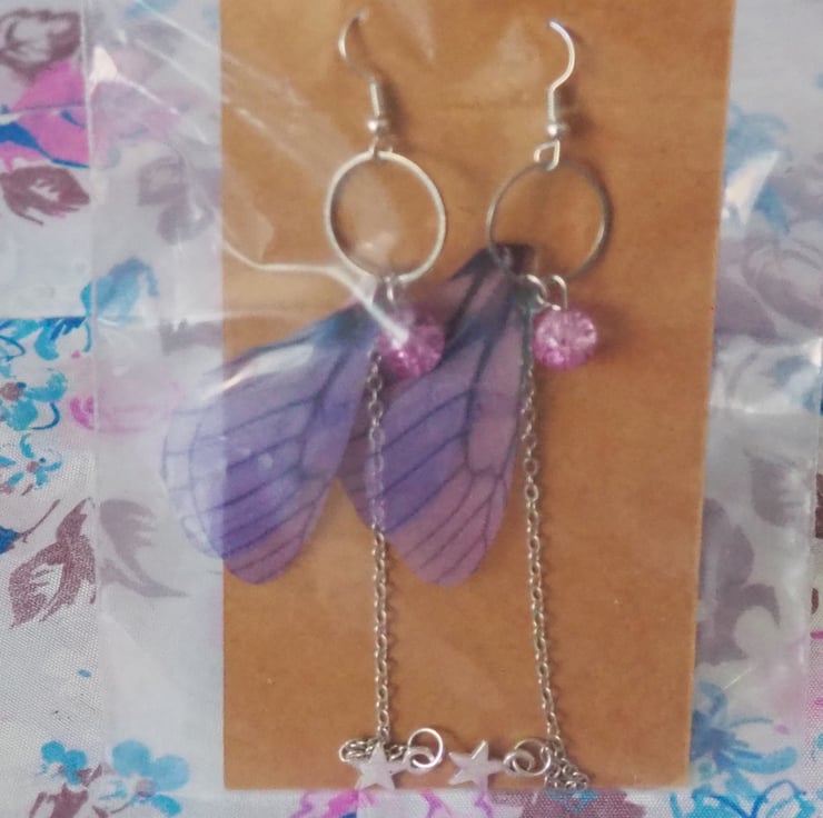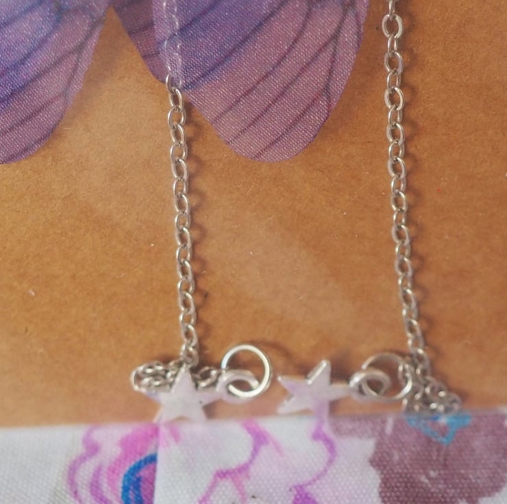 Butterfly Wing Dangle Earrings Lilac Wings with a Chain and Star Charms