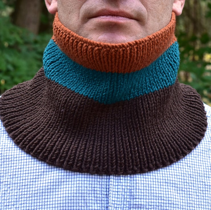 Handmade Merino Wool Neck Warmer - Knitted Unisex Striped Cowl Scarf