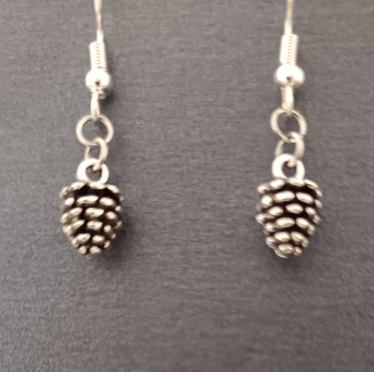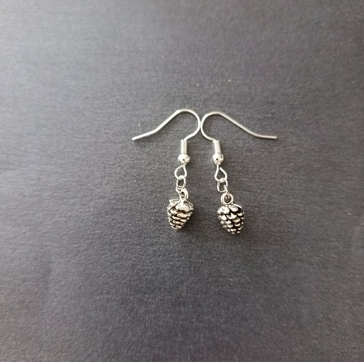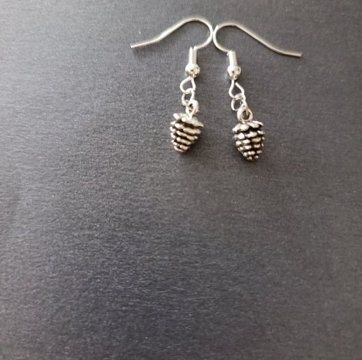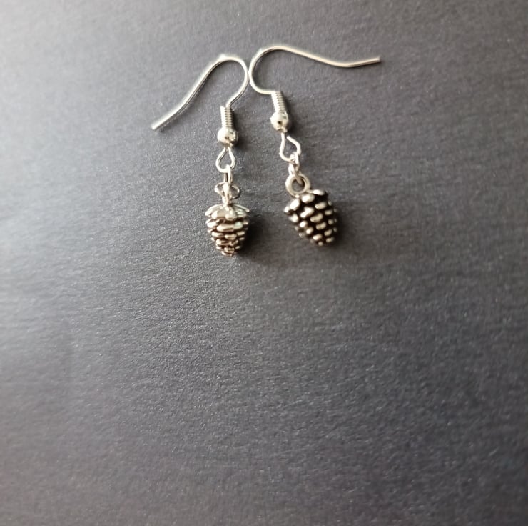 These handmade earrings are crafted with small sterling silver pine cone charms and stainless steel earring hooks. Nature and seasonal inspired, getting ready for Autumn and winter
