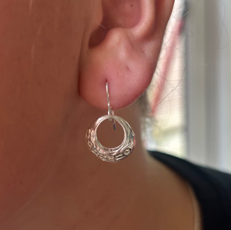 I couldn’t let it stay forgotten. So I made a mould and used silver clay to bring its lovely details back to life. The clay picks up every fine line, and I chose to leave out the middle to let the floral border really shine. The result is a pair of earrings that feel both vintage and fresh - like something passed down, but made new.