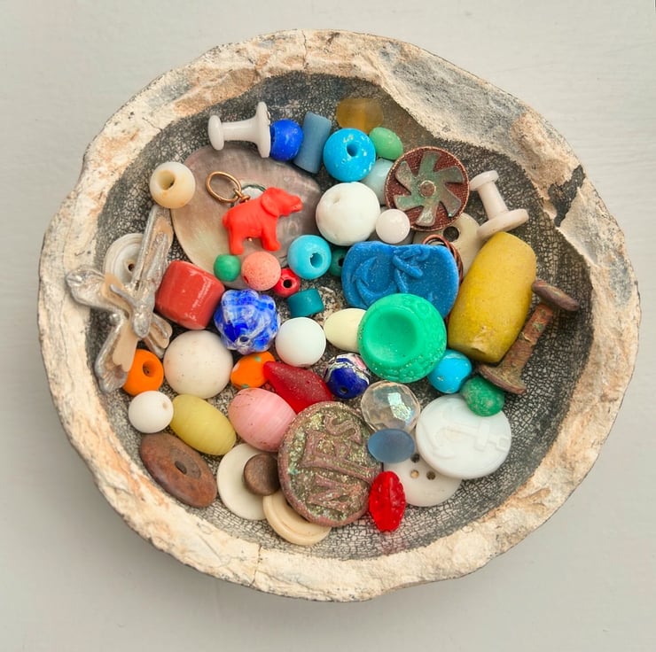 I found this little button while foraging in woods near an abandoned cottage in Co.Cork. It was still holding onto the wire from the coat it once belonged to. A Czech glass button, full of charm and mystery, felt like a tiny piece of someone’s story, waiting to be told again.