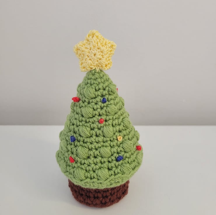 Green body and brown bottom with some colourful lights which placed randomly. And added with bright yellow star on the top. Treely is the smallest member.