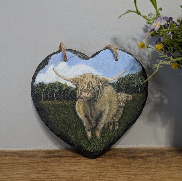 Created using acrylic paint on a heart shaped slate ready to hang in your home.