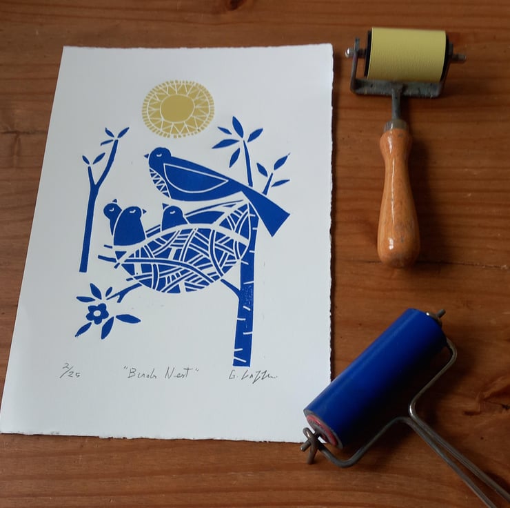 Birds Nest is an Original Limited Edition Lino cut Print of only 25, (NOT a digitally reproduced print ).