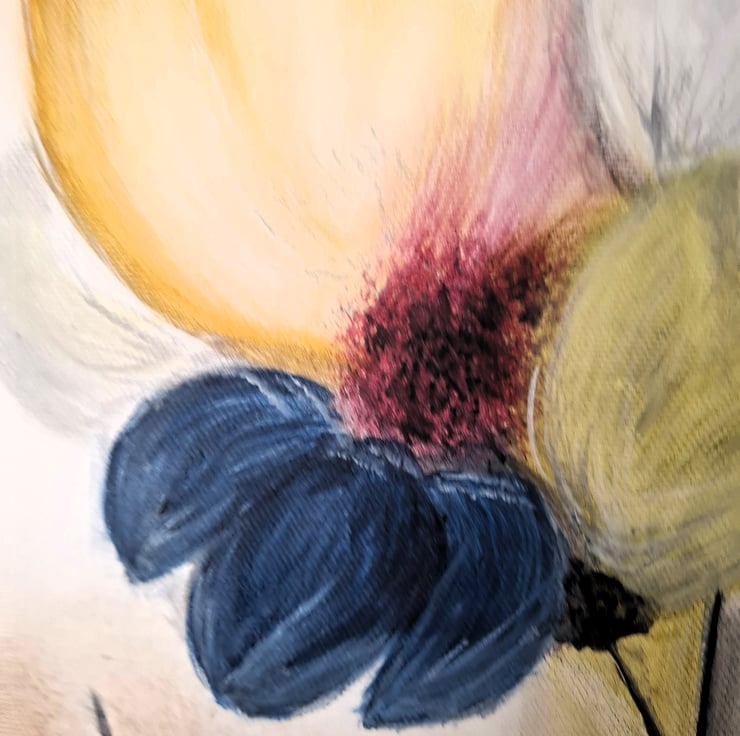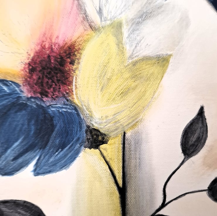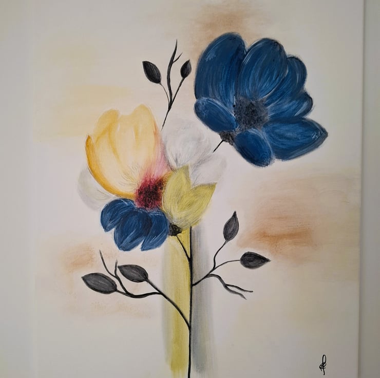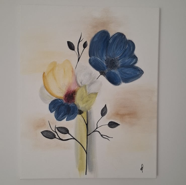 I was inspired by a soft floral art I saw online, obviously with my own personal interpretation and I watered down my acrylic paints to give a softer focus. I sat in my garden painting this one whilst we had our heatwave..