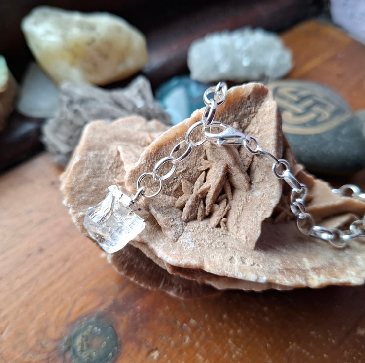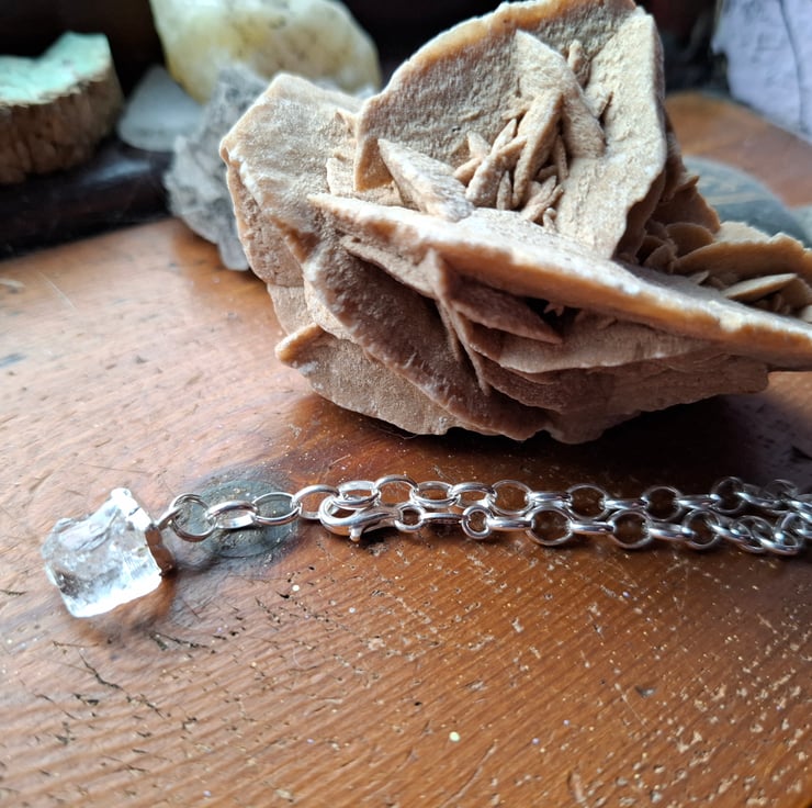 This gorgeous raw Quartz (stepping in for Diamond, of course I'd love to use it but not a chance at this price) has been capped in sterling silver, hangs from an up to 7.5 inch sterling silver large belcher chain (you just fasten it at your desired length, but I could add jump rings to lengthen it slightly, please comment or contact me to check). The simple beauty of the crystal is maximised in this format, the clarity comes alive as the light hits it, showing its natural beauty. Each is individual and are approximately 1.5 - 2cm in length.