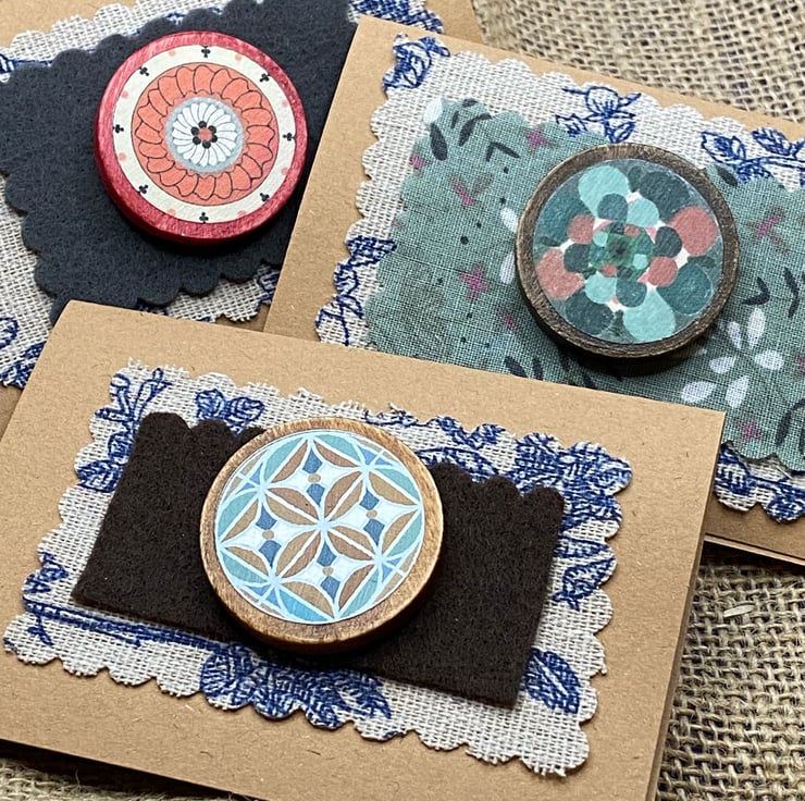 This wooden brooch is an adaption from my fascination of this pattern yet they all look quite different. I do enjoy using and experimenting with colour and line.