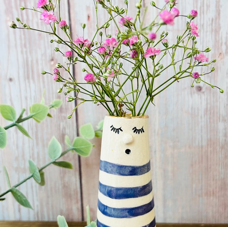 Each vase is finished with a 24k gold lustre rim. I recommend hand washing only.