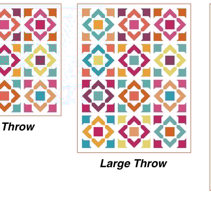Fabric requirements for each size of quilt in both yards and metres; Step by step instructions on how to make each size of quilt, from quilt block to sashing; Picture diagrams of what should happen at each step with easy to read and follow descriptions; A colouring page so you can decide which colours should go where.