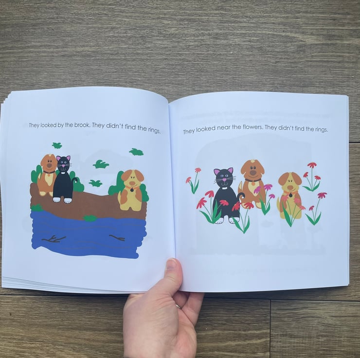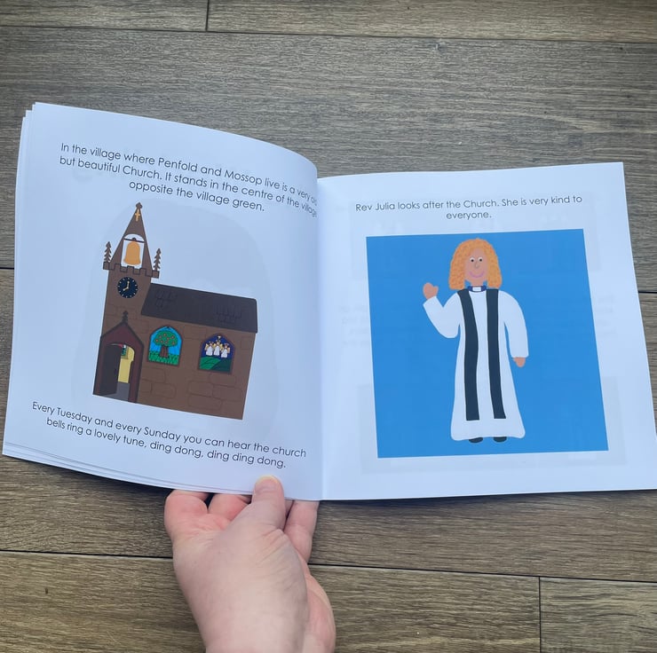 Inspired by events and people in the Village and my two dogs I wrote The Wedding adventure story book and then developed this into an activity book that serves as a personalised invitation to children attending the wedding.