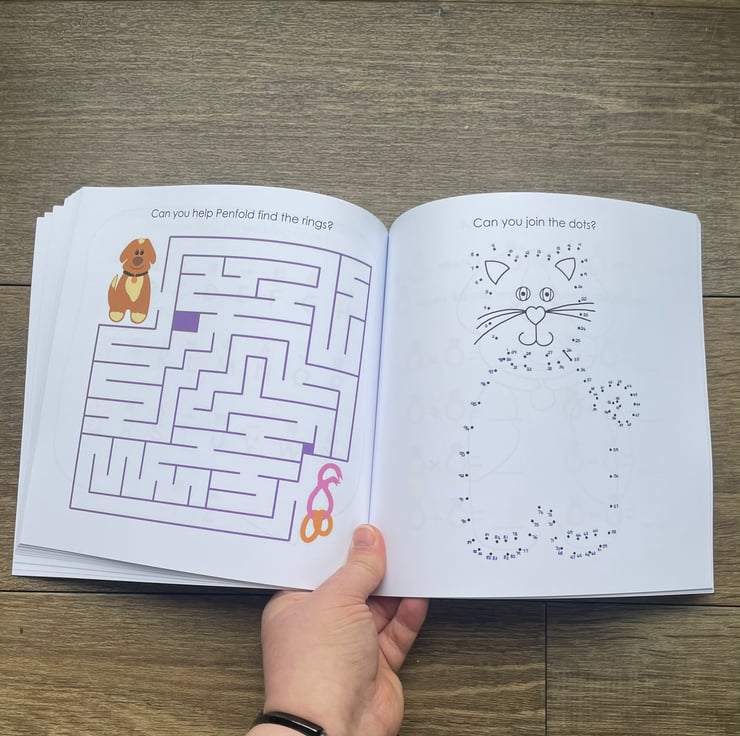 Following on from the charming and colourfully illustrated story, are a range of activities from very simple to more challenging to cater to a wider age range of children and to keep them engaged. They will be able to enjoy all sorts of activities from drawing and colouring, colour by numbers, mazes, word searches, spot the difference, to math and logic puzzles. All hand drawn by Hannah to make this a unique and special gift.