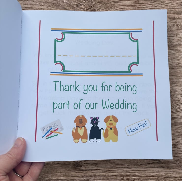 When my husband and I got married we only had a small wedding because of Covid but we had a big party afterwards. It was difficult to try and find something special for the children, that would keep them quiet during the necessarily quiet bits and entertained as well as be a memory for them.